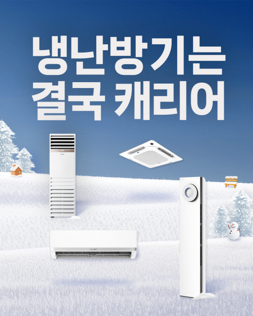 오돌오돌 너무 추운 겨울, 캐리어 냉난방기가 있는 따뜻한 공간에서 한파 추위를 피해보아요. ⠀ 사계절 내내 냉방, 난방, 제습까지 가정용, 상업용 모두 OK!