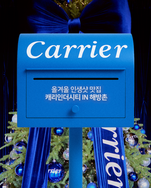 공기바뀜주의: 캐리인더시티 IN 해방촌 冬 Edition MISSON. 올겨울, 캐리어가 따뜻함으로 해방촌 공기를 바꿨어요! 지금 바로 캐리어 냉난방기가 설치된 해방촌 곳곳의 핫플레이스에서 블루 포인트의 캐리어 크리스마스존을 찾고 이벤트에 참여해보세요 참여 방법 1.캐리인더시티 콜라보 매장의 포토존에서 인증샷 촬영 2. 개인 인스타그램에 [게시물] 혹은 [...